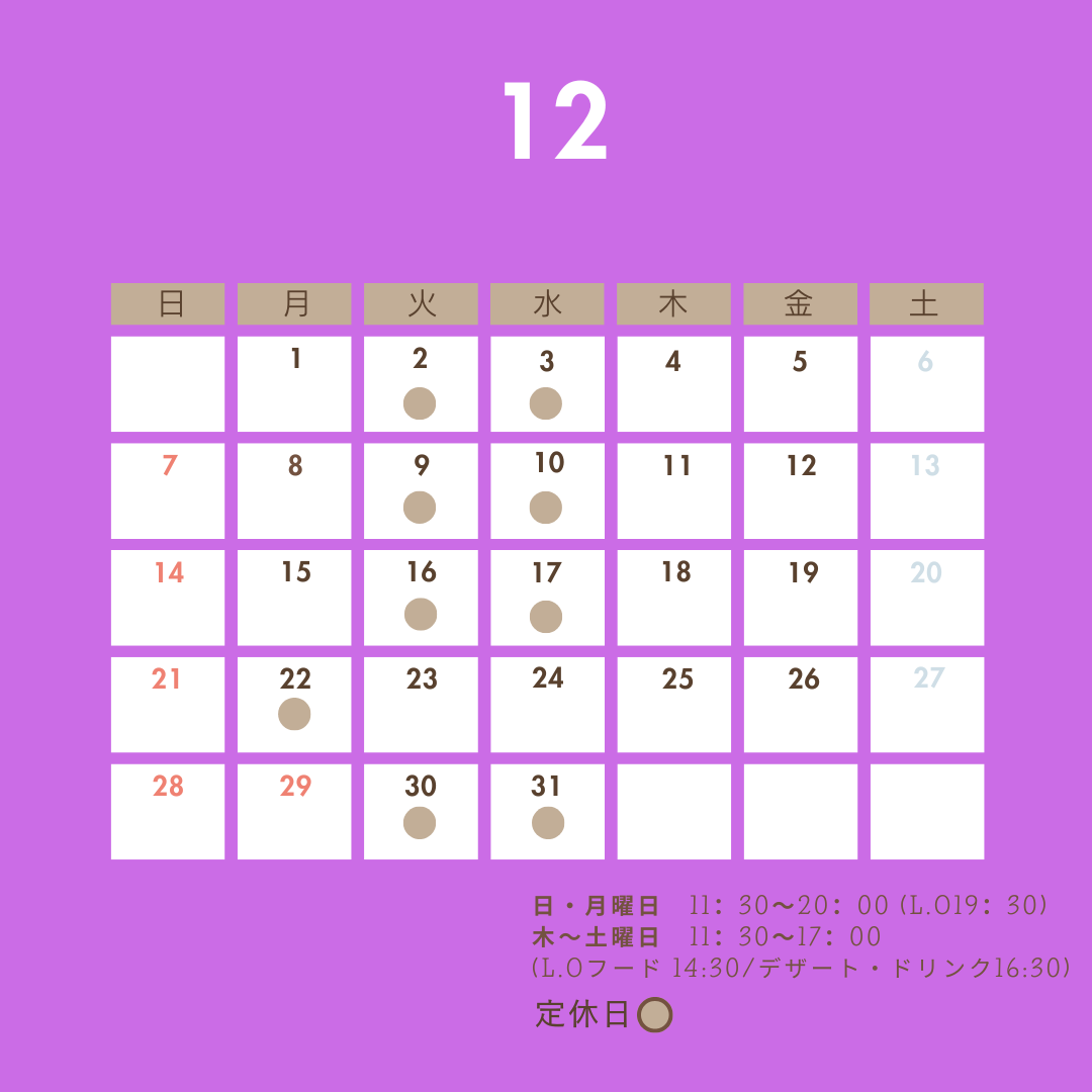 3週目までは火曜日、水曜日をお休みとさせていただき