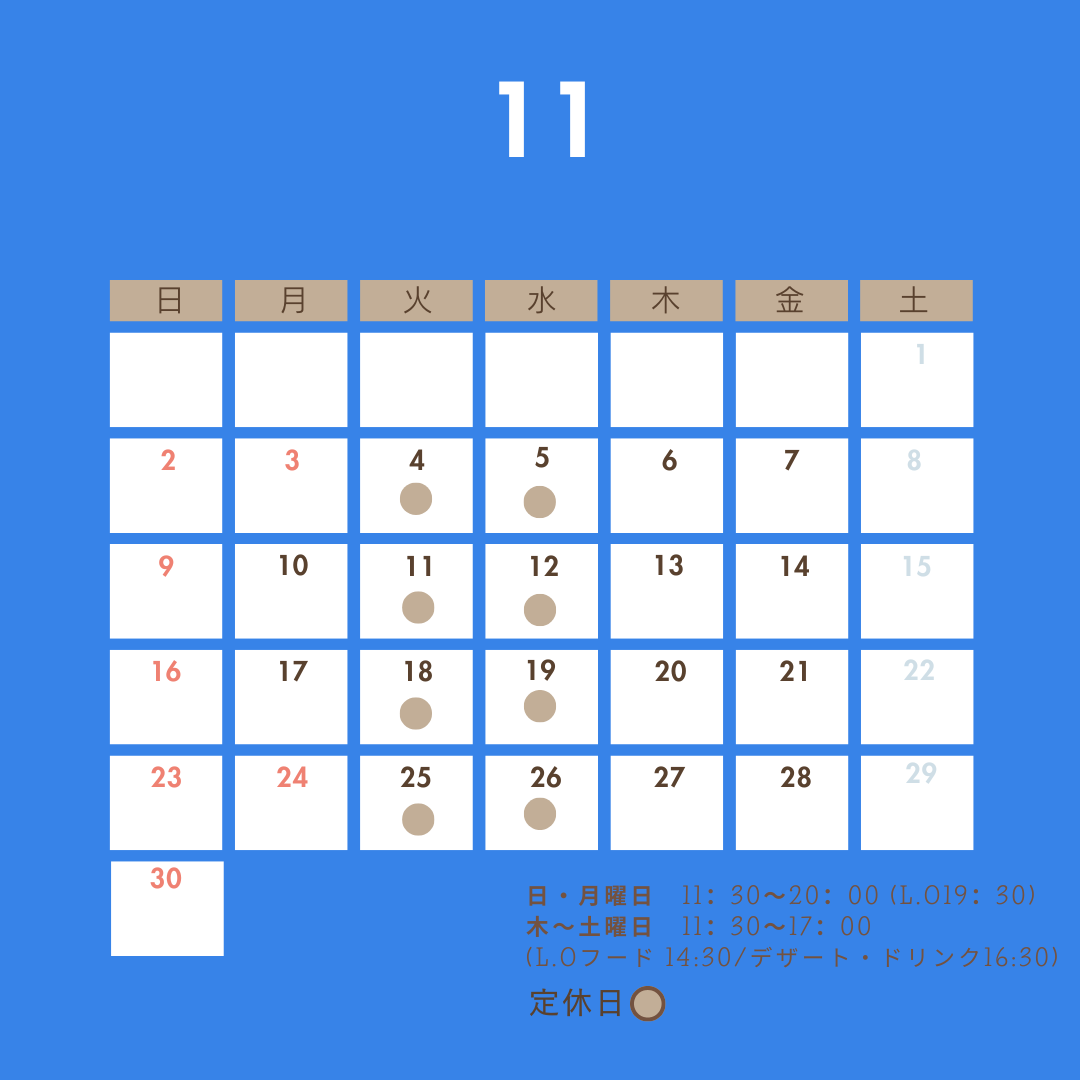 11月の営業日のお知らせです。