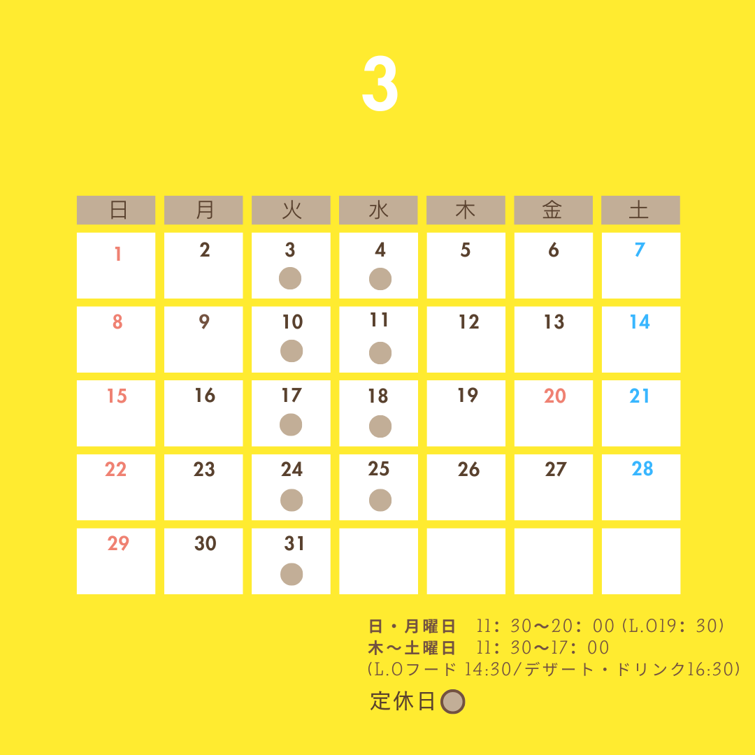 3月営業日のお知らせです