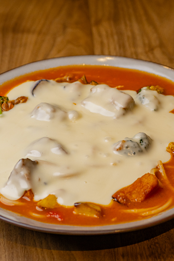 たっぷりのチーズと柔らかく煮込んだ豚肉が