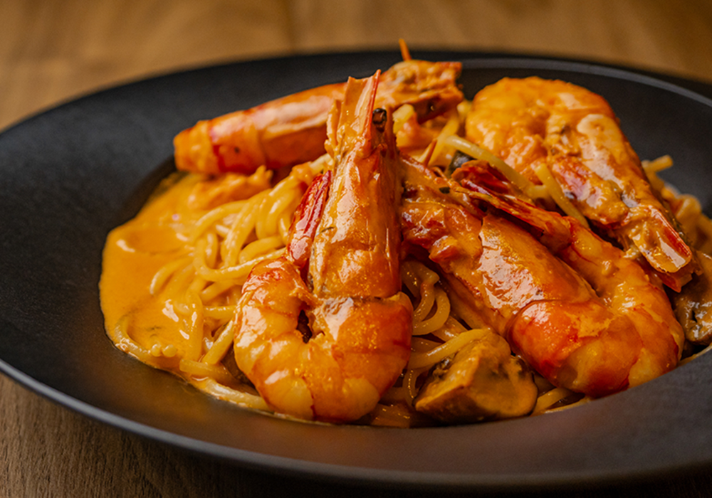 エビ好きのためのパスタ。エビのカーニバルをお楽しみください